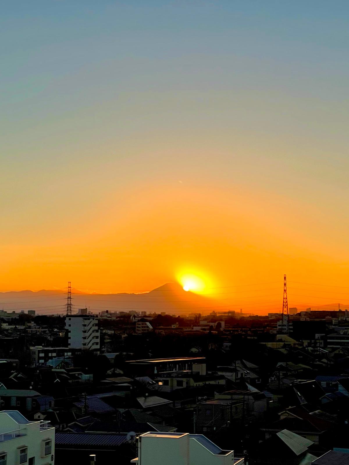 夕日の沈む富士山